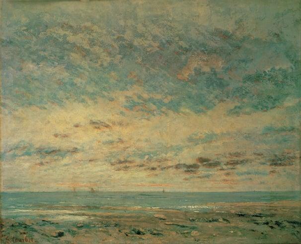 In the foreground is a view of the sea from a sandy shore with a few ships in the distance. The horizon is low and the sky fills three-quarters of the picture surface. This painting may be dated to the years I865-6 when Courbet painted many paysages de mer at Trouville and became particularly fashionable, both for portraits and for sea studies. It may conceivably be identified with one of the twenty-five seascapes at Trouville mentioned in a letter by Courbet to Castagnary, dated 5 July, I869, as having proved a financial loss to him through the bankruptcy of his dealer Delaroche.