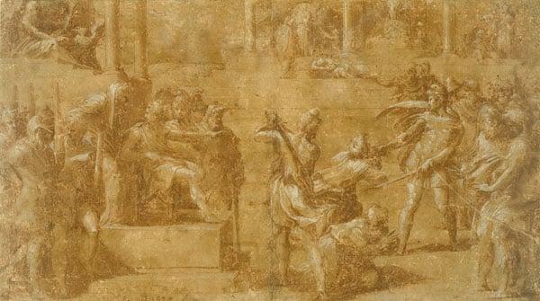 The original chiaroscuro study for a woodcut by Antonio da Trento.