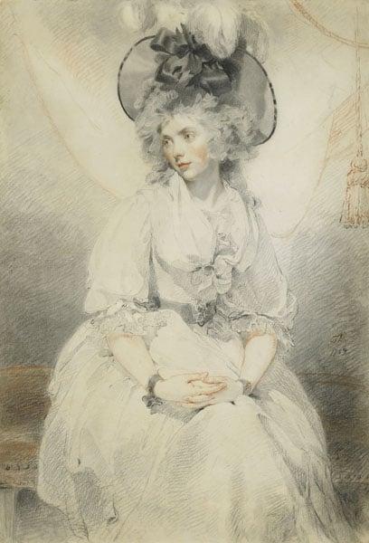 Portrait of Mary Hamilton, the wife of Lawrence's artist friend and neighbour William Hamilton. Lawrence's biographer recorded that the two friends 'used to draw a great deal from the antique statues at night, whilst Mrs Hamilton would read to them either poetry, history or works of the imagination'.