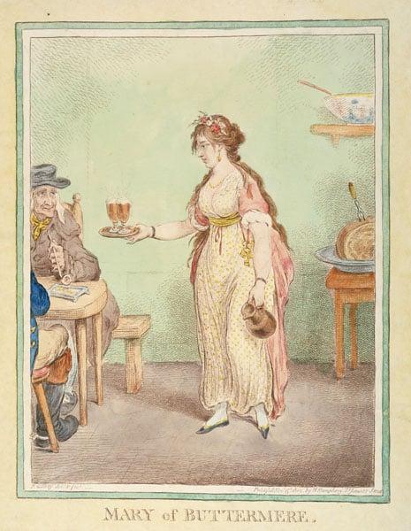 Mary of Buttermere was the victim of bigamist James Hatfield, whose case was a sensation. James Gillray was a brilliant political caricaturist, and drawings by him are rare as he usually drew directly onto the engraver's plate. Wordsworth included Mary's story in Book VII of 'The Prelude', contrasting his own fate with hers. One drawing and one engraving.