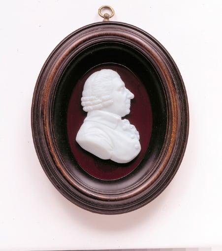 This head and shoulders, with profile to the right, is incised on the cutaway John Adam 1791.