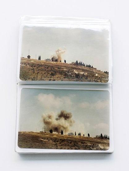 As a teenager in Beirut during the Israeli invasion of Lebanon in 1982, Akram Zaatari photographed scenes of war damage and kept the resulting prints in a small souvenir photo album. Twenty-four of the images are of explosions and war damage in Saida, for example from an air raid targeting a Palestinian base on Mar Elias Hill. The remaining ten images are of scenes in Beirut, mainly of the damage to the Unesco building. In 2003 Zaatari used some of these photographs in the construction of a large panorama, June 6, 1982. In 2007 he returned again to his childhood work: he photographed the pages of the album itself, re-presenting the original object as a personal archive, 25 years after its creation. Presented by the Art Fund and the Esmée Fairbairn Foundation.