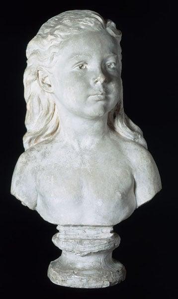Bust of a little boy with long hair gazing to the right. The full length marble statue is in the National Museums of Scotland.