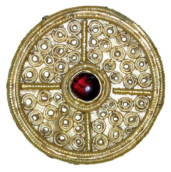 This gold mount is filigree-decorated within a beaded wire border. Pendants set with garnets and wire decoration were popular in the 7th century AD. Comparison with other saxon jewellery indicates that this came from a womanÂ’s necklace pendant, and was probably the centre of a larger pendant. Chelmsford only has a small collection of Saxon artefacts and therefore this beautiful work is a welcome addition and will be used to interpret the so called Dark Ages.