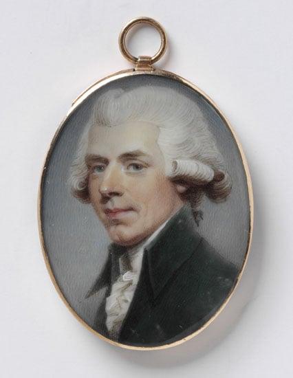 Oval ivory portrait of Thomas Wilkes of Overseal, Derbyshire and Measham. Gold bracelet frame.
