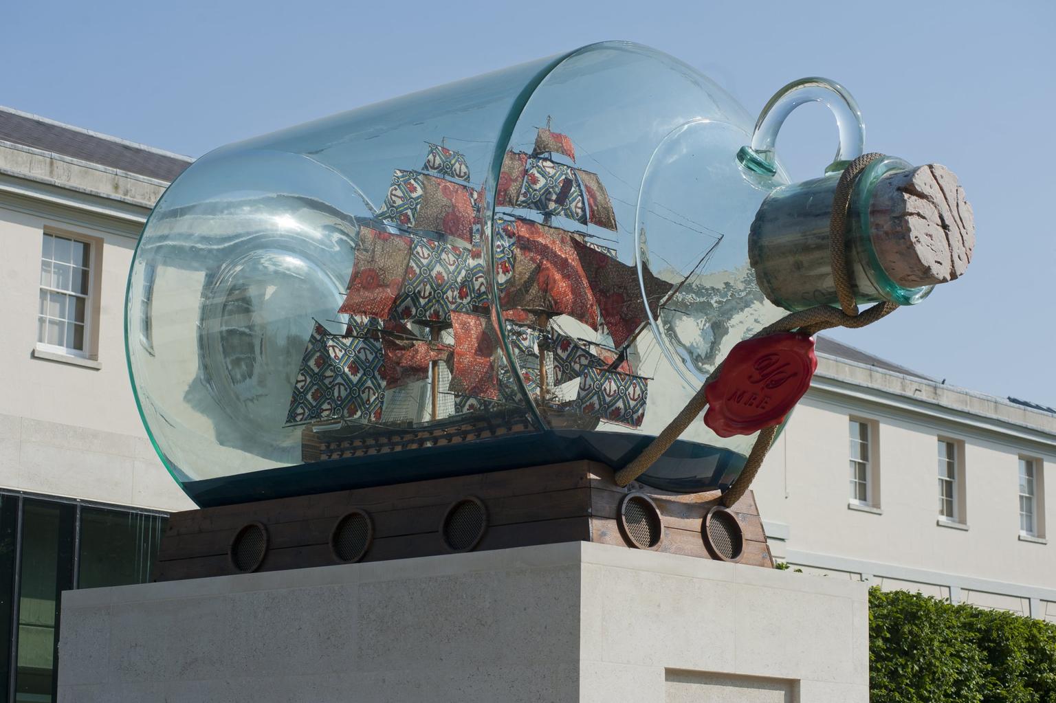Alongside the Art Fund's grant of £50,000, £251,677 was raised through the public campaign, mostly from individuals. The work is a scaled-down replica of HMS Victory, the ship captained by Nelson. It was commissioned by the Greater London Authority in 2009 for the fourth plinth in Trafalgar Square, where it was displayed from May 2010 to January 2012. The only significant departure from the historical Victory is the use of richly patterned ‘Dutch Wax’ fabric (a trademark of the artist’s work) for the 37 sails. The fabric is commonly associated with African dress and symbolic of African identity and independence.