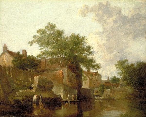 The site represented is a mill-pond in front of the New Mills, Norwich. One of the finest oil paintings by John Crome, it is comparable in quality to the oil 'St Martin's Gate, Norwich'.