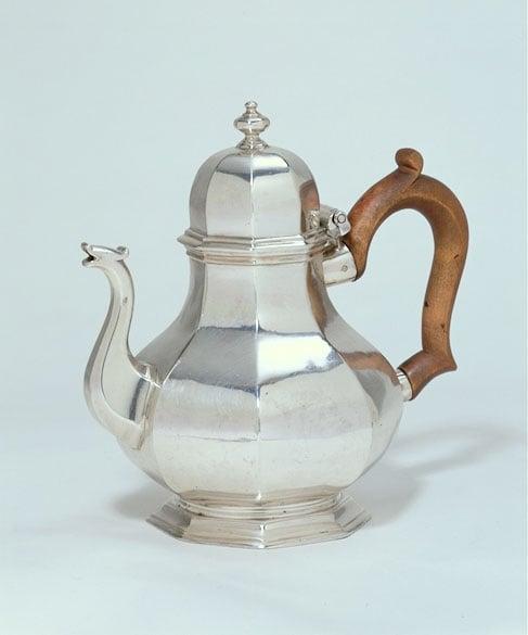 Octagonal teapot and two gilt teaspoons, 1703–1719
