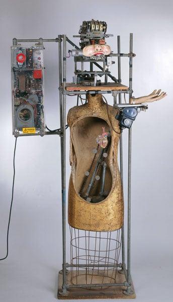 Robotic character mixed-media assemblage, which moves in reaction to the viewer's/participant's voice. Described by the artist as 'the spectacle of mass-consumption turned into a fully-functioning robot dictator made out of his own discarded products, simultaneously hilarious and terrifying'.