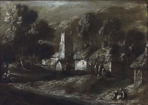 A village scene with figures. This work belonged to the Herbert Powell Collection of British Watercolours which was first given to the National Art Collections Fund in 1929 to function as a Loan Collection for public institutions. Dr Herbert Powell gave further additions to the Collection in 1936 and 1950. The Collection was finally permanently distributed amongst various public collections in 1968.