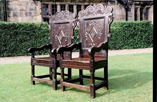Pair of panel back armchairs. Believed to belong to a workshop group from Chinnery, Leeds.