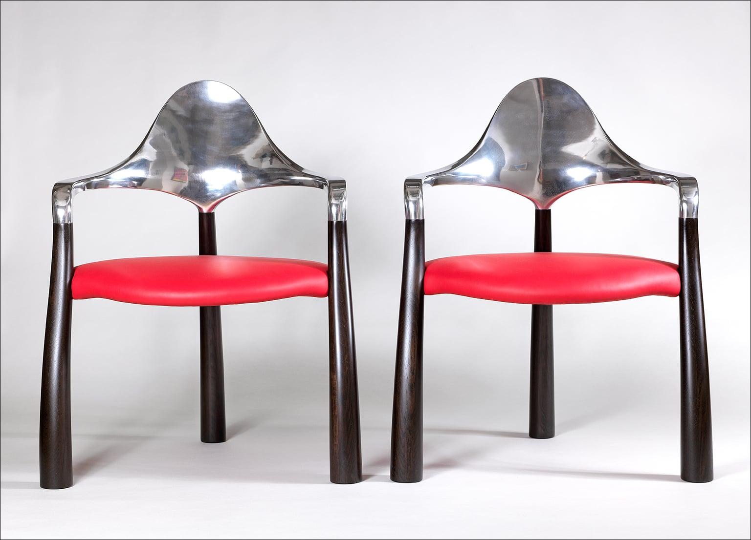 fumed english oak, polisherd aluminium and red leather