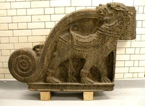 Balustrade terminals carved in high relief with lions. Origin: the region of Vijayanagar during the last Hindu Kingdom in Southern India.
