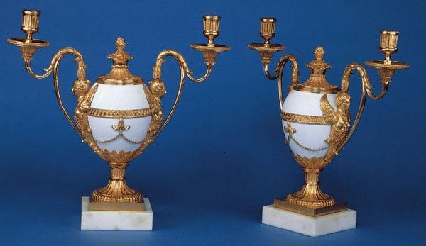 Wing figured vases were extremely desirable in the late 18th century for fashionable interiors; buyers included the Prince of Wales, and Tsar Paul I. This pair are rare survivors as glass is much more vulnerable than marble or blue john.