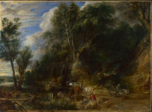 Peasants with cattle by a Stream in a Woody Landscape, 1615–1622