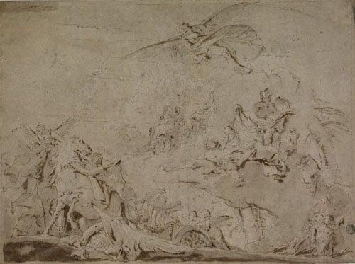 Sketch in pen and sepia for the fresco in the Palace Archinti, Milan. This work was donated by Henry Oppenheimer, who presented over 30 works to the British Museum through the Art Fund between 1907 and 1933.