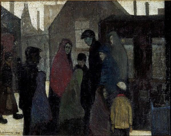 Lowry deliberately devised his Chaplinesque figures as a conceptual image of Man and the underlying theme of his work is loneliness and Man's isolation. Here, powerfully, but without compassion, he depicts the human emotion surrounding a pit tragedy.