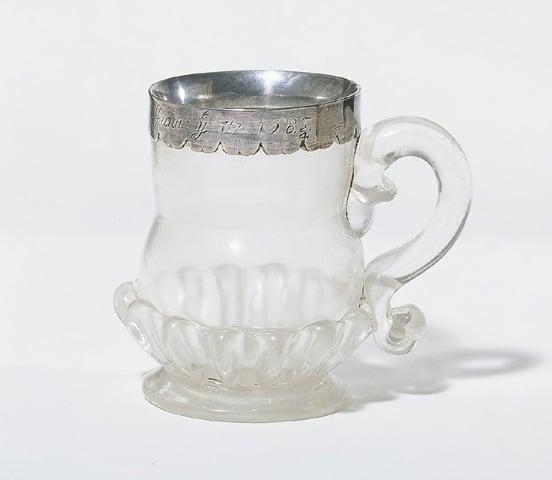 When the Thames froze in the winter of 1683-4 London tradesmen, deprived of their usual living by the severe weather, created a spectacle such as London had never known. A double row of booths formed 'Temple Street' across from Temple Stairs to the South Bank. With the melting of the ice all vanished beneath the waters, leaving behind only those ephemeral souvenirs that so rarely outlive the memory of the event, let alone survive to become heirlooms for three centuries. This unique glass souvenir, the only accurately dated piece of English glass of the 1680s, is a perfect, reduced version of a contemporary glass ale mug. The form of words in the engraved inscription strongly suggests a while-you-wait engraver working at one of the two toy shops shown on woodcut illustrations of the fair, which were themselves printed in a booth on the ice. Too small for use, yet too precious for a child to have as a toy, this delightful object has survived against all odds, providing an entree into one of the most remarkable episodes of late 17th-century England.