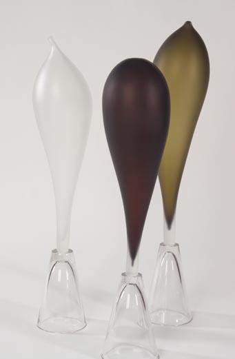 The vases give the appearance of floating but they are grounded with harsh clear conical bases. Purchased by the Art Fund with the assistance of the Esmée Fairbairn Foundation.