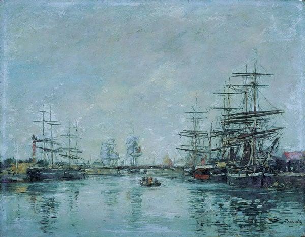 Eugene Boudin spent most of his long career in Le Havre, where he came into contact with many landscape artists who inspired and encouraged him to paint. A substantial amount of his work, predominantly seascapes and coastal scenes, derived from either this locality or from his native town of Honfleur. The essence of Boudin's style was to capture the fleeting qualities of nature: the effervescent colours in the sky, the constant movement of the sea and the changing patterns of the land. He is often described as a pre-Impressionist because of these characteristics. He became an important influence on the early work of Monet and took part in the first Impressionist group exhibition in 1874. This is one of two paintings donated by Norah Davidson and they are both are fine examples of Boudin's delicate use of a tonal palette and display many of his characteristics.