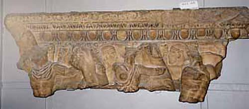 Portion of a marble sarcophagus; architectural sculpture from the collection from Morton's House, Corfe Castle, Dorset. Morton's House is a 16th century Elizabethan manor house. Built in 1590 in the shape of an 'E' to honour Queen Elizabeth I, it has in more recent times been sympathetically converted into a nineteen bedroom hotel