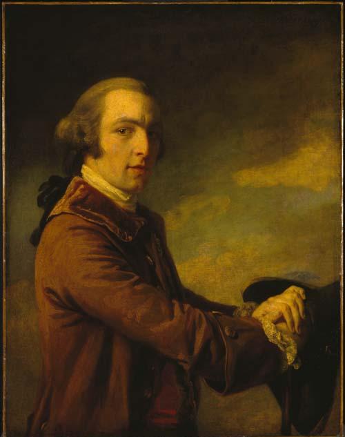 Half-length figure resting his hands on a walking stick. Head turned. Portrait believed to represent John Simpson of Esslington, Northumberland. Inscribed 'F Cotes, pxt 1765 (F and C in monogram)'.