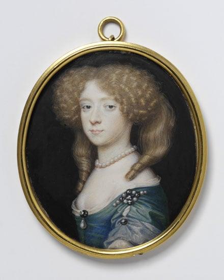 Portrait of Frances Jennings, Duchess of Tyrconnell. This was one of the most attractive and accomplished of the seventeenth century miniatures in the Buccleuch collection. The attribution of the miniature to Richard Gibson was based on its resemblance to several signed examples in private collections, but whoever may have painted it, it is a lovely work and displays the degree of refinement to which the contemporaries of Cooper were able to carry their work without loss of boldness and simplicity.
