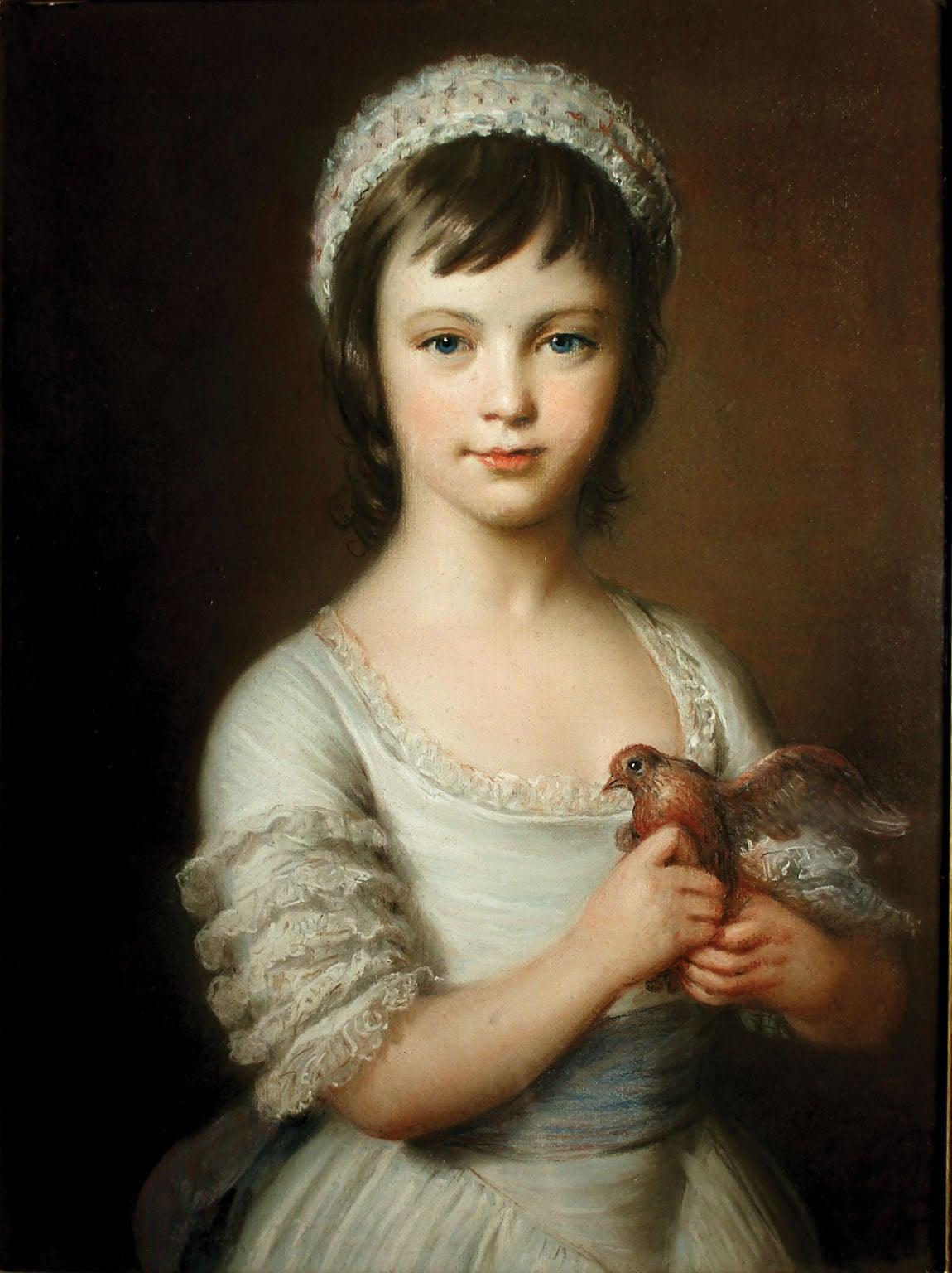 This is a portrait of Charles Brudenell-Bruce, grandson of Henry Hoare of Stourhead and is a charming image of childhood. He is depicted in a dress. The age at which young boys were ‘breeched’ varied but was often around seven. Despite his rather unmasculine appearance, he grew up to be a military man and MP. William Hoare developed a close relationship with the Hoare family of Stourhead. Previously unrelated (despite the identical surnames), William Hoare’s daughter Mary married a cousin of Henry Hoare of Stourhead in 1765. From then on the families, and William Hoare and Henry Hoare in particular, became close. William Hoare produced many pastel portraits of Henry Hoare, his children and grandchildren, some of which are still on display at Stourhead.