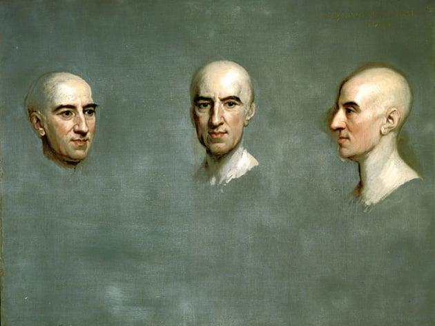 Daniel Finch, 2nd Earl of Nottingham and 7th Earl of Winchilsea (1648-1729/30), head only in three different positions; in profile to right; very slightly to left; and 3/4 to left. Inscribed in yellow at top left, 'Danl. E of Nottingham/by Sir G'. One of 26 gifts to 19 museums by Sir Alec Martin or Sir Alec and Lady Martin through the Art Fund between 1935 and 1967.