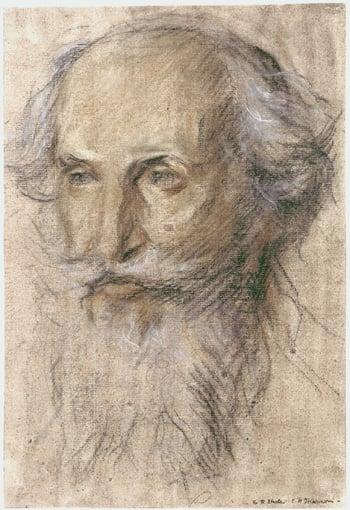 Portrait of Frederick James Furnival 1825-1910. Three-quarter head to left, drawn in black, red and white chalk on brown paper. One of two gifts to two museums by Robert Steele through the Art Fund in 1910.