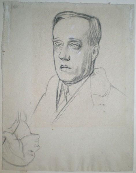 This is a rare portrait of the composer Gustav Holst with an image of his wife sketched in the margin. It is a sensitive likeness emphasising the self-effacing modesty of the man. Sir William Rothenstein is a major British artist, known for his portraits of celebrated men of the early 20th century. This work is an original drawing for the artist's book, 'Twenty-four Portraits' published in 1920 which contained drawings of important men of the period alongside biographical sketches of his subjects. The Holst Birthplace Museum is dedicated to celebrating the life and work of Gustav Holst and to encouraging the understanding and playing of his music. Only two other portraits of Holst are known to exist.