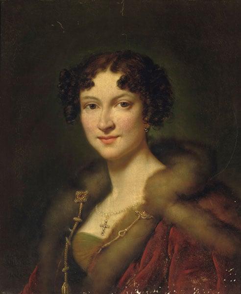 This portrait of Henriette is linked to the original collection of 43 pictures which founded the Art Gallery in Cheltenham. Henriette married Henri-Francois-Joseph Auguste du Bois in 1821 around the time of this portrait. Henri created the important de Ferrieres collection of Dutch 17th century paintings, together with 19th century Dutch and Belgium paintings. The De Ferrieres collection was bequeathed to Henri and Henriette's son Charles and was then given as the founding collection to create an Art Gallery in Cheltenham in 1898. The name of the collection came from Henriette Louise Peterson as her mother was a de Ferrieres.