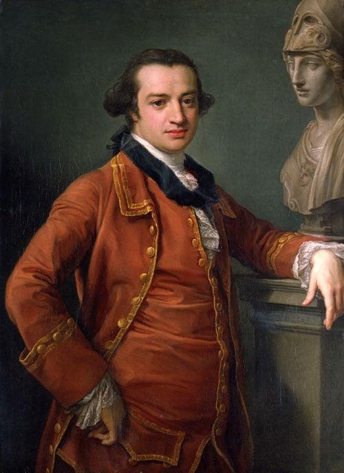 Depiction of Monck in a pose characteristic of an Englishman on the Grand Tour, posing against a bust of Pallas Athene.