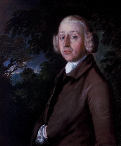 A portrait of Lambe Barry (1704-1768), High Sheriff of Suffolk in 1748 and listed as a Free-burgess of Ipswich in 1755. The sitter is depicted in a wig against a dark leafy background. Now thought to have been painted during the sitter's visit to Bath.