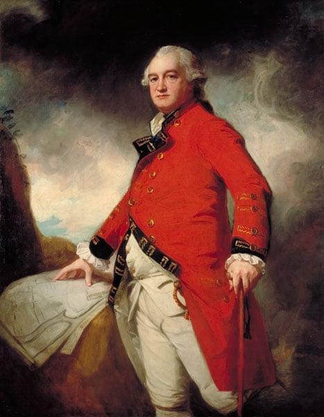 Three quarter length portrait of Major General James Stuart, showing him in military dress and resting on a map of part of India. He served in Nova Scotia, America, and India and quarrelled with Lord Macaulay, with whom he fought a duel and was severely wounded.
