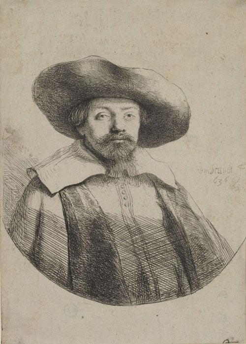 Portrait of Manasseh ben Israel, (1604-1657), Jewish theologian and cabalist. First state before alteration to contour of cheek and chin and additional shading on outermost fold of cloak. Part of three bequests to four museums by Osbert H Bernard through the Art Fund between 1922 and 1988.