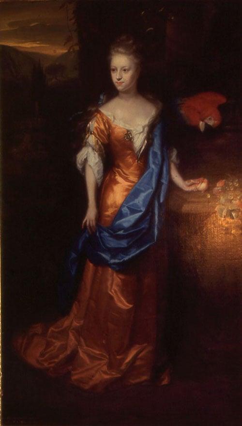 The sitter in this attractive portrait was the eldest daughter of Viscount Lonsdale and Catherine Thynne. Schalken established a considerable reputation for small genre subjects, usually shown by candlelight, and as a portrait painter. Encouraged by the success of Kneller, he visited England, where no doubt this portrait was painted but he met with little success, partly, it is said, because of his boorish manners.