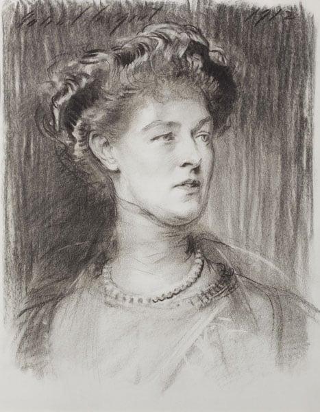 Sargent depicts Lady Powis as a great lady, her hair piled up in the fashionable bouffant style of the time. As the wife of the 4th Earl of Powis, Violet persuaded her husband to entrust the entire management of the deteriorating gardens at Powis Castle to her in 1911. Over the next 18 years, she effectively recreated the gardens of Powis into the internationally renowned form that they have today. This drawing, made around the very time that she took over the management of the gardens, shows her in her maturity, and conveys her assurance as chatelaine and garden designer.