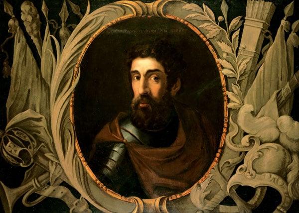 Half-length portrait of William Wallace (1274-1305) dressed in armour, surrounded by a decorative border. Produced as part of a decorative scheme, probably to be hung above a fireplace or doorway, as an expression of the owner's patriotism.