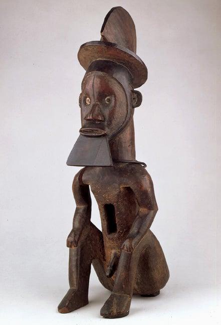 Teke squatting male figure, from the Republic of Congo. Made for use in a magical or medicinal context, the cavity in the abdomen being used to contain appropriate curative substances.