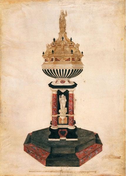 Presentation design drawing of the baptismal font for Canterbury Cathedral, c. 1638–1639