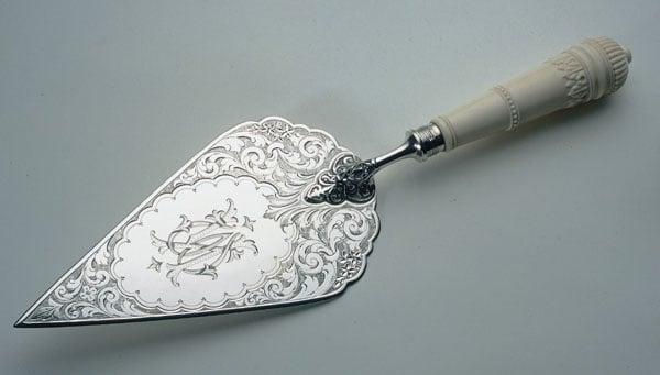 The trowel is decorated with scrollwork and intertwined initials on one side and an inscription dated 1906 on the other. It was made by Cooper Brothers & Sons, a Sheffield firm, and commemorates the 1895 founding of new premises for the Jewish Soup Kitchen, one of the major Jewish communal institutions in Manchester that supported recent immigrants. It offered free soup to Jewish workers in the factories in the Cheetham area, and still exhists today in its modern incaranation as 'Meals on Wheels'.