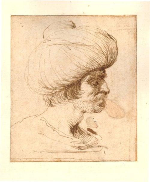 Head of a man wearing a turban.Part of an album of drawings belonging to Lord James Cavendish MP (d 1741), son of the second Duke of Devonshire (1665-1729), founder of the great collection of drawings at Chatsworth. The collection of drawings form an interesting relic of the great age of collecting in England.