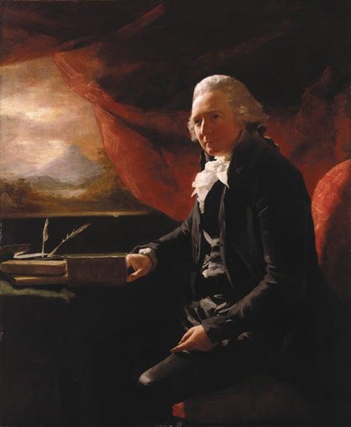 Portrait of Professor Richardson of Glasgow University; friend of Sir Walter Scott. He is dressed in a dark grey dress, seated at a table upon which are books and writing materials on a terrace. One of four paintings purchased with funds supplied by the Public Art Gallery, Dunedin.