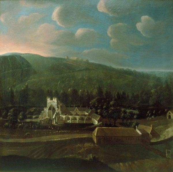 Calder Abbey was founded in 1134 by William de Meschines. The abbey was granted to Dr Thomas Leigh by Henry VIII at the Dissolution of the Monasteries. This painting is thought to be the earliest depiction of the ruins of the historic medieval monastery showing parts of the building which have since disappeared.