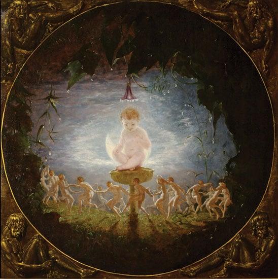 Richard Dadd is synonymous with the Victorian genre of fairy painting which flourished during the 1840s – 1870s. This work is his very first example of fairy painting and was exhibited at the Society of British Artists in 1841. It established Dadd’s reputation as a leading artist of the day. The painting depicts Puck, a central character from William Shakespeare's play 'A Midsummer Night’s Dream', sitting on a toadstool while smaller fairy figures dance around him in moonlight. Dadd succumbed to mental illness in 1843 and murdered his father after which he was incarcerated for life. Although he continued to paint, he only ever finished about twelve fairy oil paintings. This is the first example of the ‘fairy’ genre and enhances the Harris’ collection of Victorian paintings.