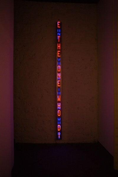Jenny Holzer is known for making work that addresses social justice and political issues, most commonly raising awareness to incidents of human rights abuse. Characteristically she exhibits written texts (either her own writings or carefully chosen quotes or texts by other people) as posters, projections or, most importantly, as LED installations of various sizes which she began to produce in the 1980s. This work uses her own words and arises from previous projects: ‘BlueÂ’ (São Paulo, Brazil, 1998), ‘ArnoÂ’ (Florence, Italy, 1996), and ‘ErlaufÂ’ (Erlauf, Austria, 1995). The texts directly address the viewer. They echo the voices of victims and perpetrators of violence and torture. This work was presented by the Art Fund through Art Fund International.