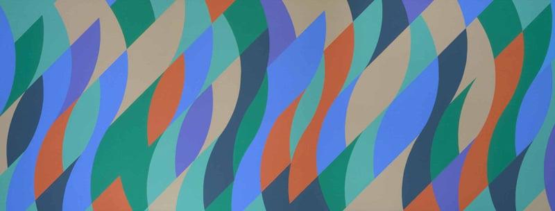 Its fusion of figure and ground creates a wave-like abstraction that celebrates the pleasure of vision and challenges our perception. Riley uses pattern and colour on an epic scale to immerse the viewer in intense sensation. She has described her paintings as opening a 'small gap of pure perception'.