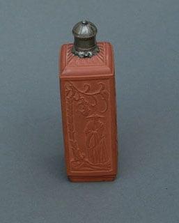This red stoneware tea-jar is remarkable in having the original silver cover, which may have been made by the Elers brothers in their capacity as silversmiths. The brothers were silversmiths before they turned to working in stoneware. The tea-jar in this form is the earliest known tea caddy, one of only four to survive in this country. The unusual counter-sunk decoration is in the Chinese taste.