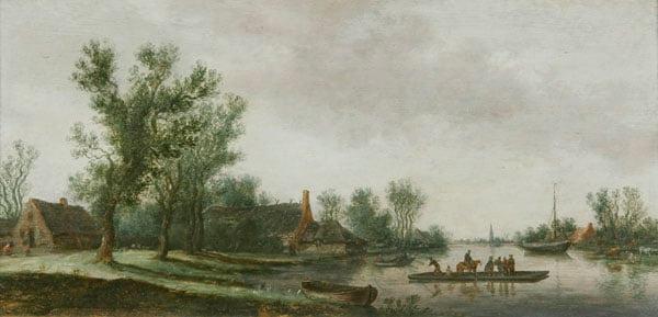 River Landscape with Ferry Boat and Cottage, 1597–1639